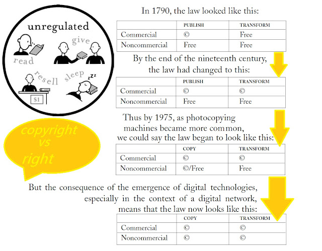 (註: 這世界根本就像黑手黨,衝買要錢或要命的恫嚇,由法院來判定著作權的授權,著作權抑制了創新)